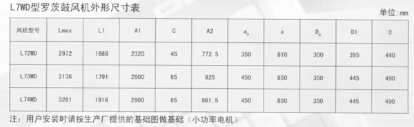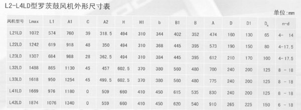L系列羅茨鼓風(fēng)機(jī)性能參數(shù)表