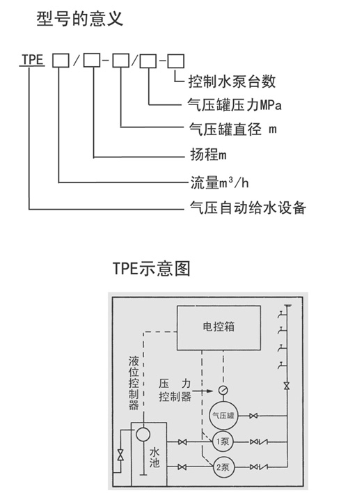 該設(shè)備由水泵機組、電控系統(tǒng)、氣壓罐、壓力控制器、閥門管路、共同底座等組成,其中氣壓罐采用隔膜式設(shè)備運行時氣水分離。(見示意圖)