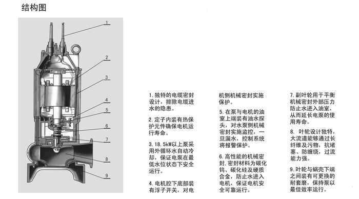 QW系列潛水排污泵是在消化、吸收國外同類產(chǎn)品先進(jìn)技術(shù)的基礎(chǔ)上研制成功的,具有高效防纏繞、無堵塞、自動(dòng)耦合、高可靠性和自動(dòng)控制等優(yōu)點(diǎn),在排送固體顆粒及長纖維垃圾方面,具有獨(dú)特功能。